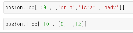 boston.loc [ :9 , ['crim,'lstat','medv']]